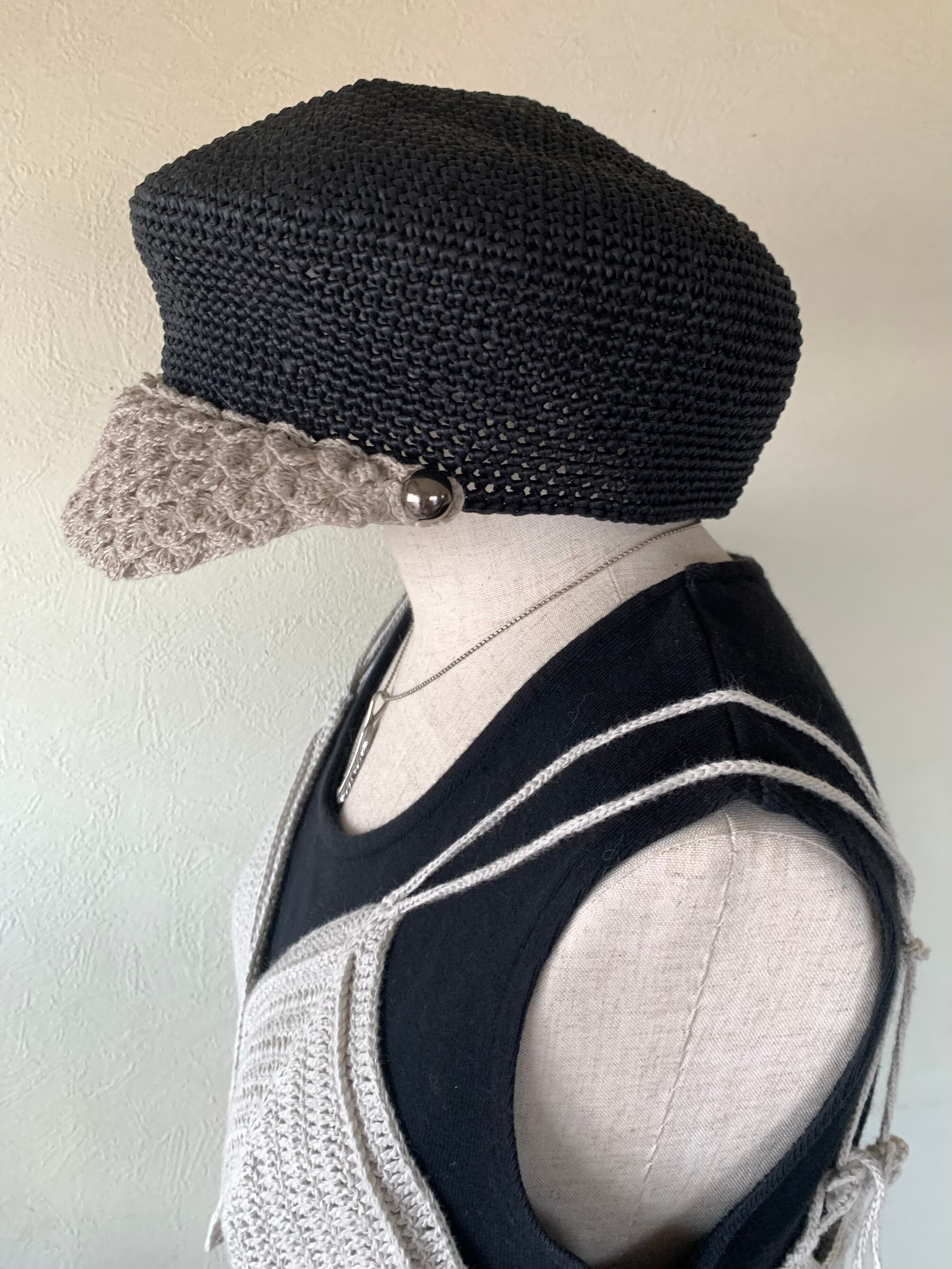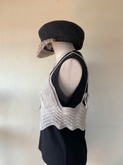 コットン糸で編んだ甲冑のようなクロシェビスチェです。