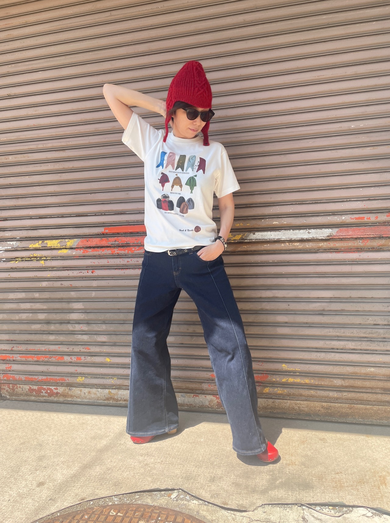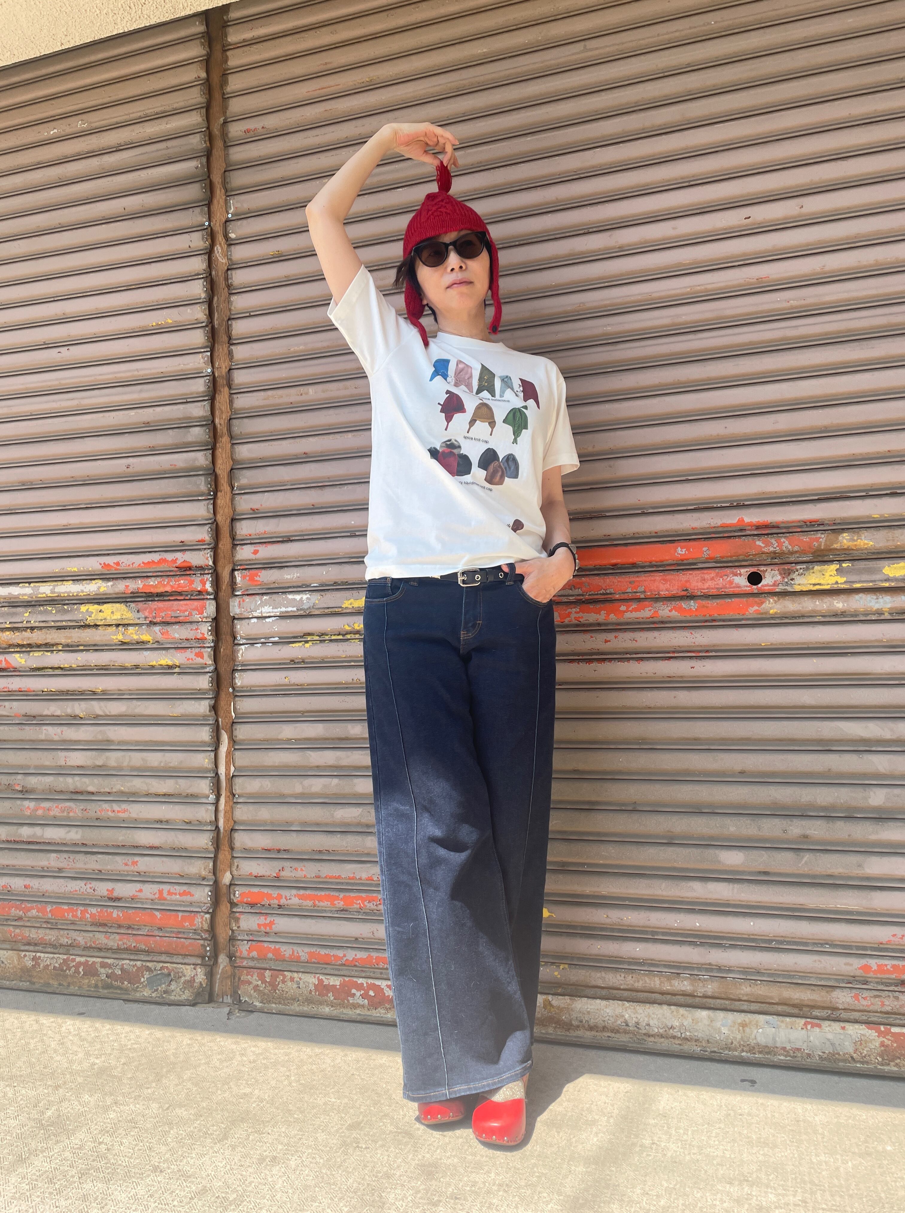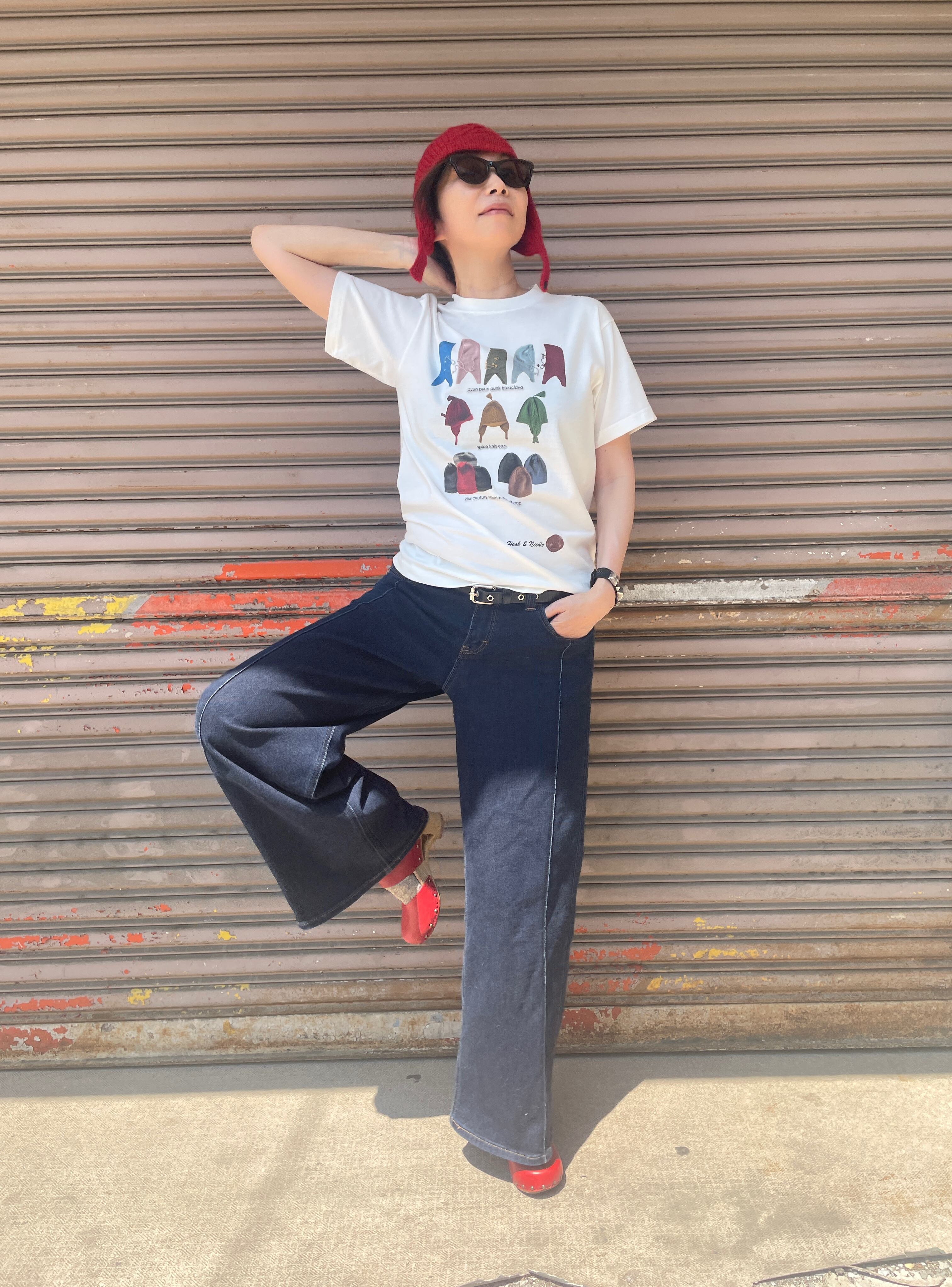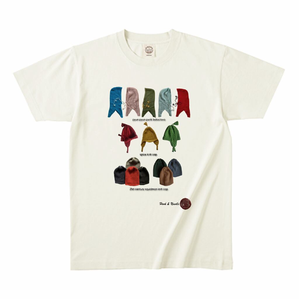 Hook & Needleの毛糸で編んだ帽子を集めてプリントしたオリジナルTシャツです。