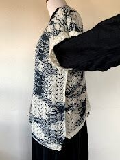 ヘリンボーンの透かし編み地をディスロケィションしたプルオーバー。