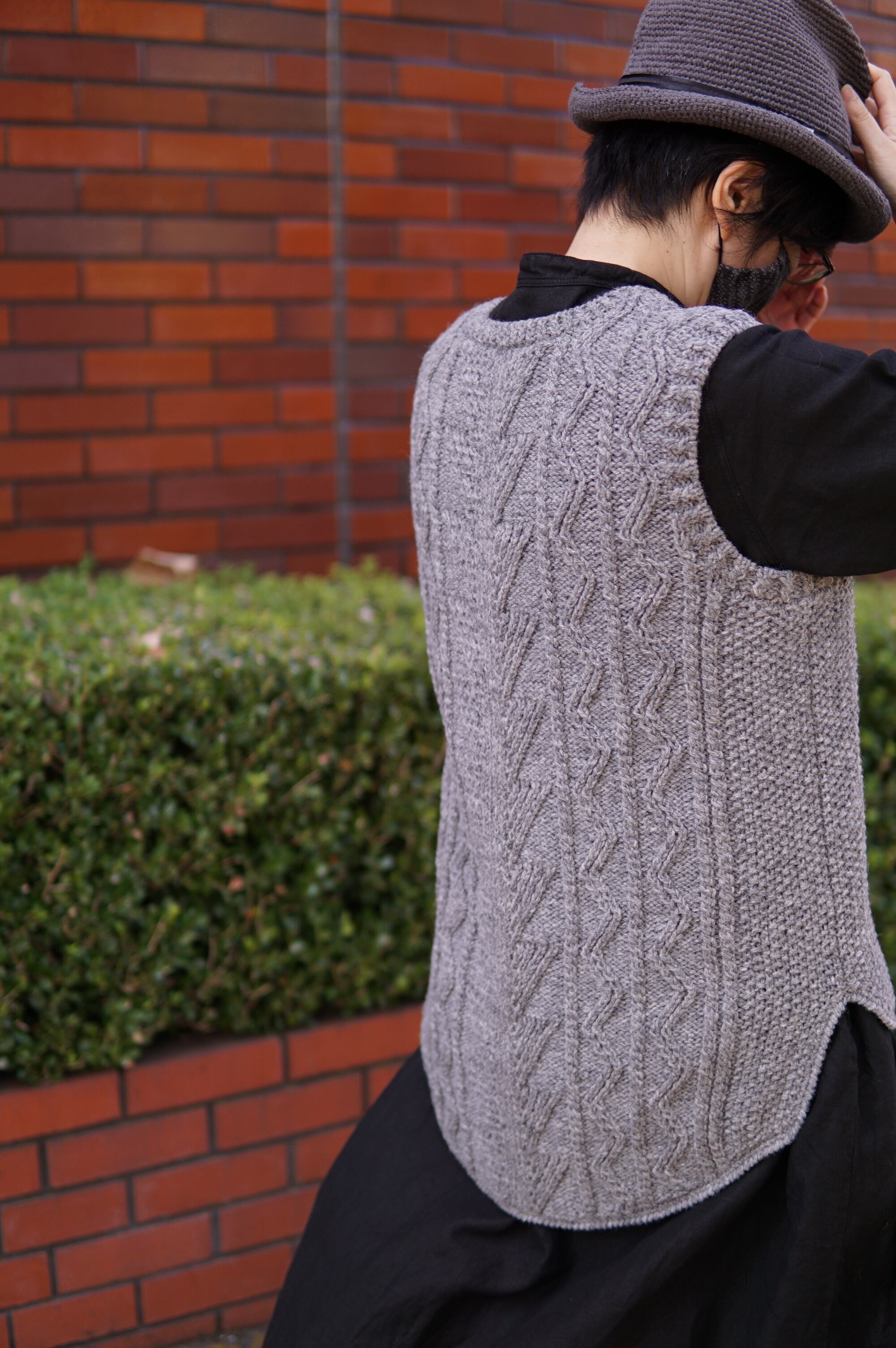 裏目とねじり目中心の比較的スッキリとしたジグザグのアラン模様。