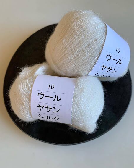 シルク100%の色糸を芯に、ウールヤサン(野蚕)の白い糸を撚り合わせて、タム加工(起毛)を施した、ふんわりソフトな糸です。