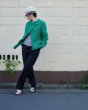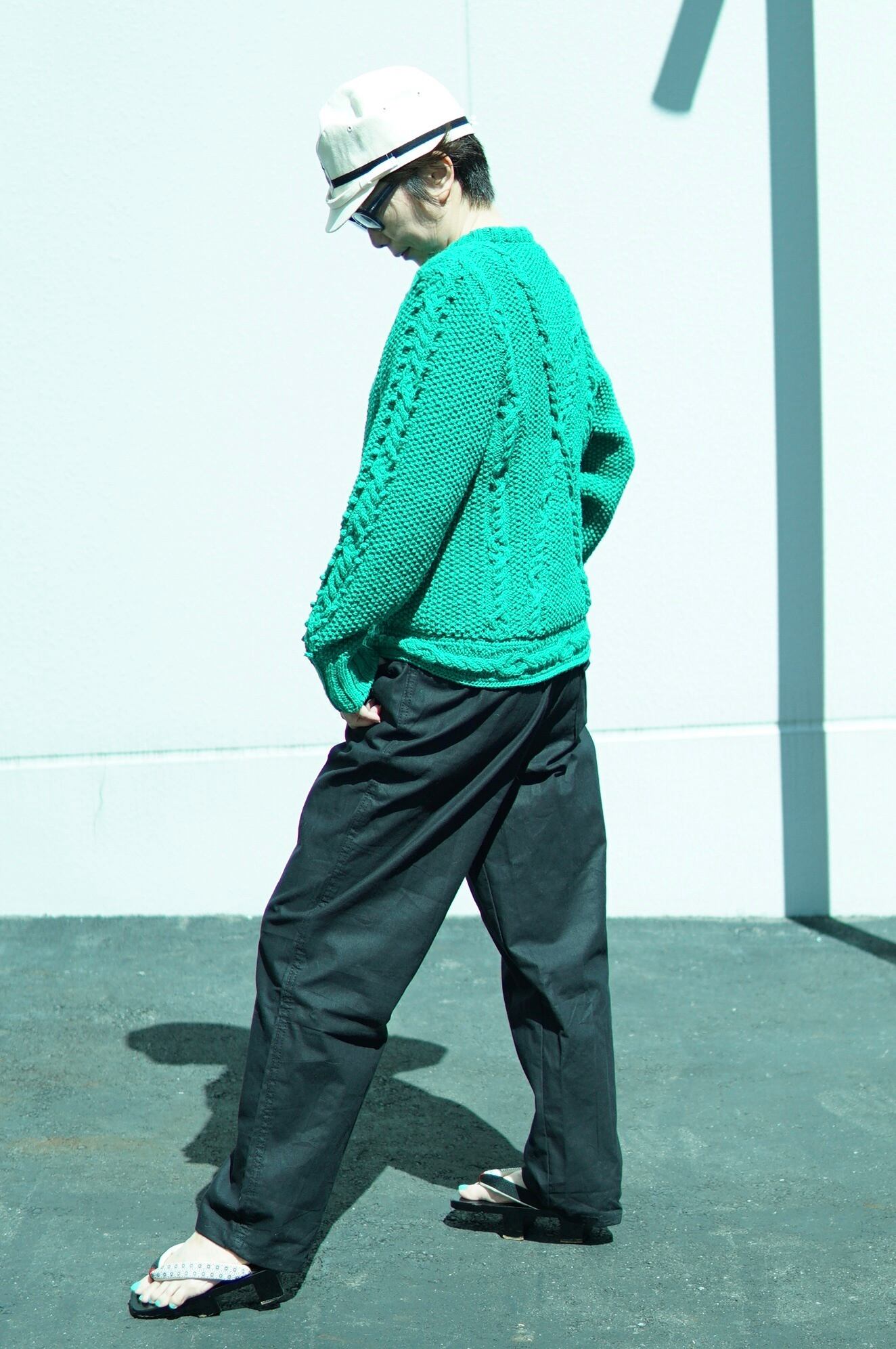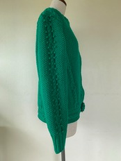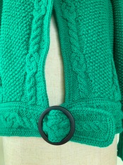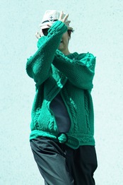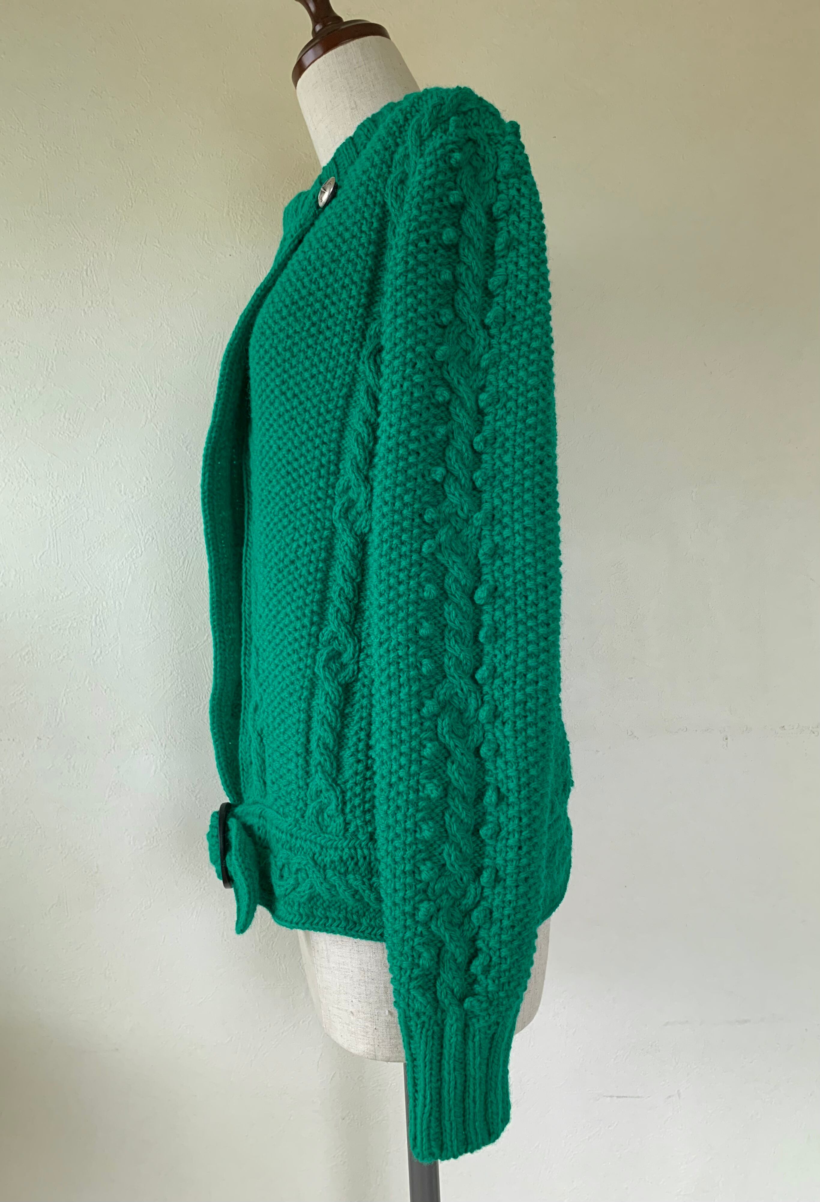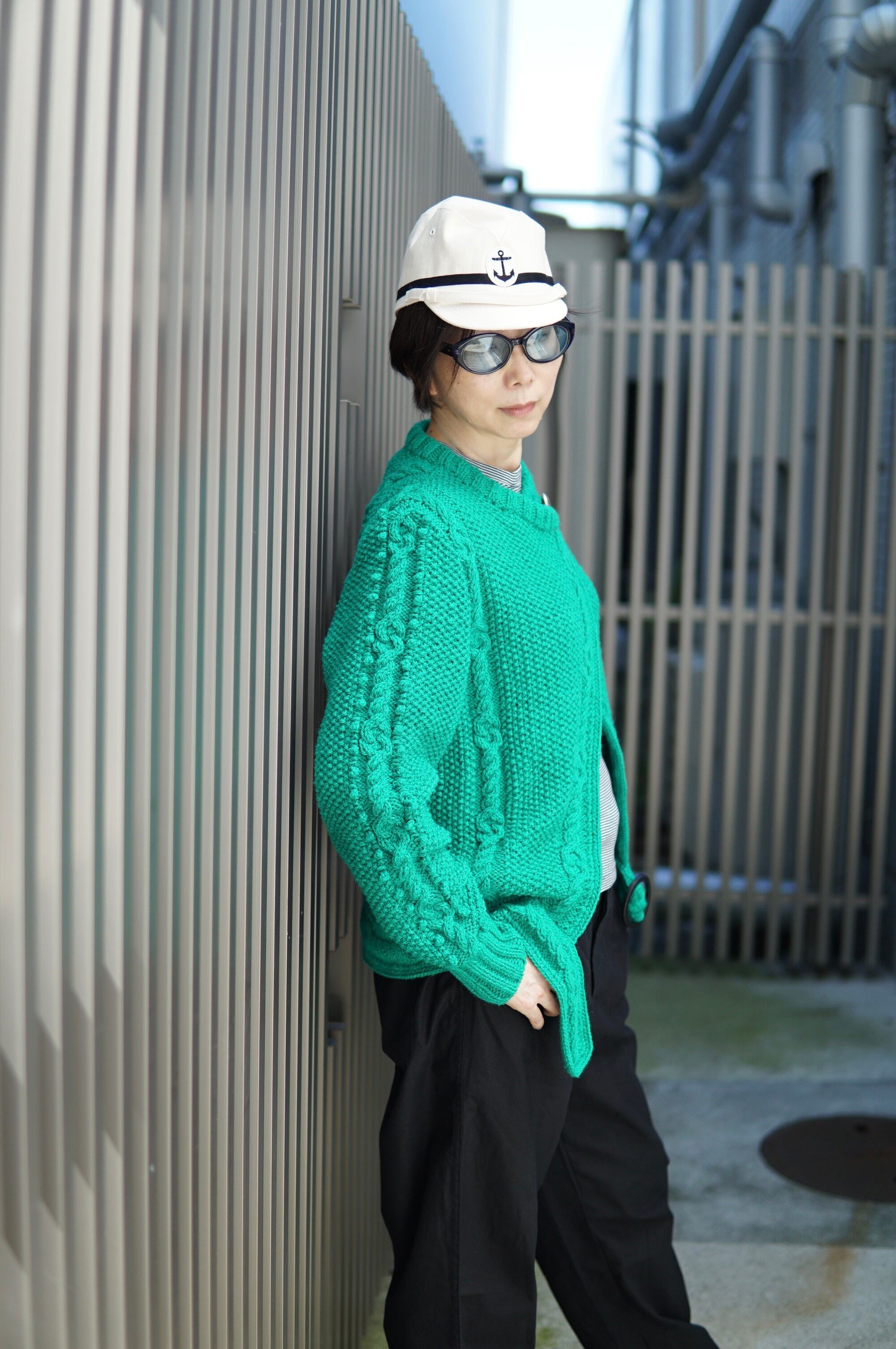 秋から春にかけてさらりとひらりと着られるニットジャケットを製作しました。こちらはビビッドなエメラルドグリーンの緑ノッツ。