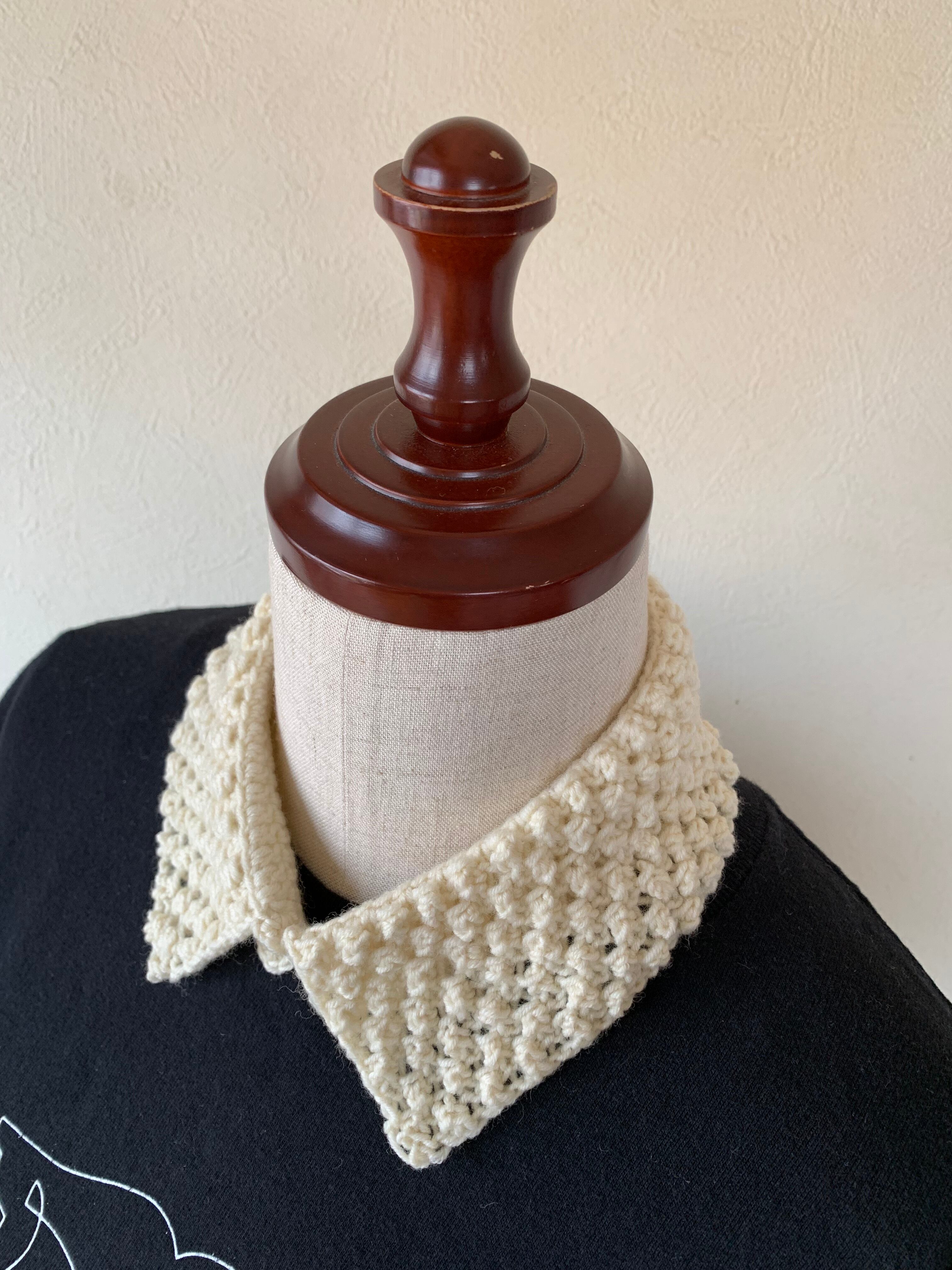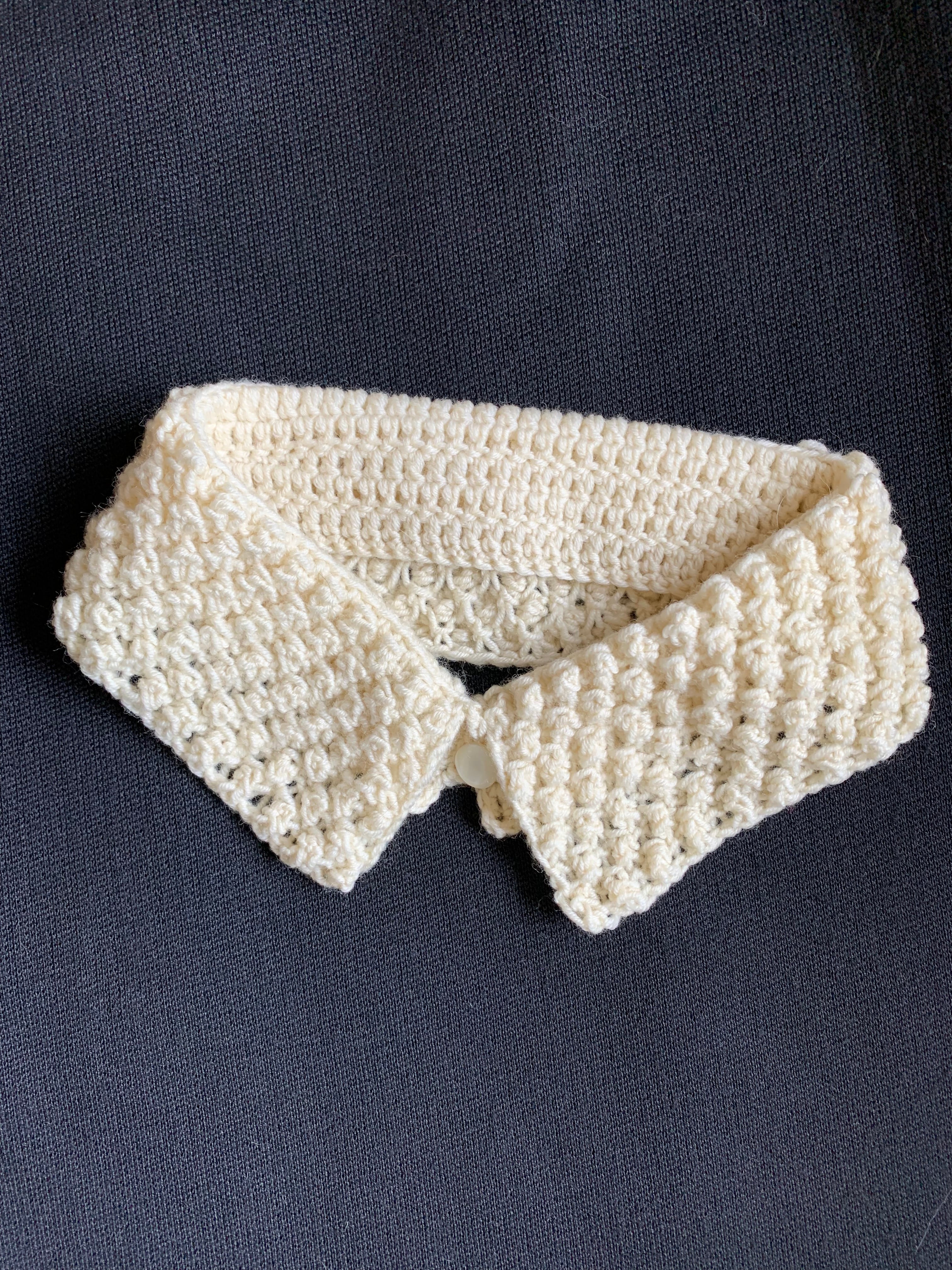 その名もブラックベリーステッチという技法で編んだ小さな付け襟です。(またはトリニティステッチとも言います)