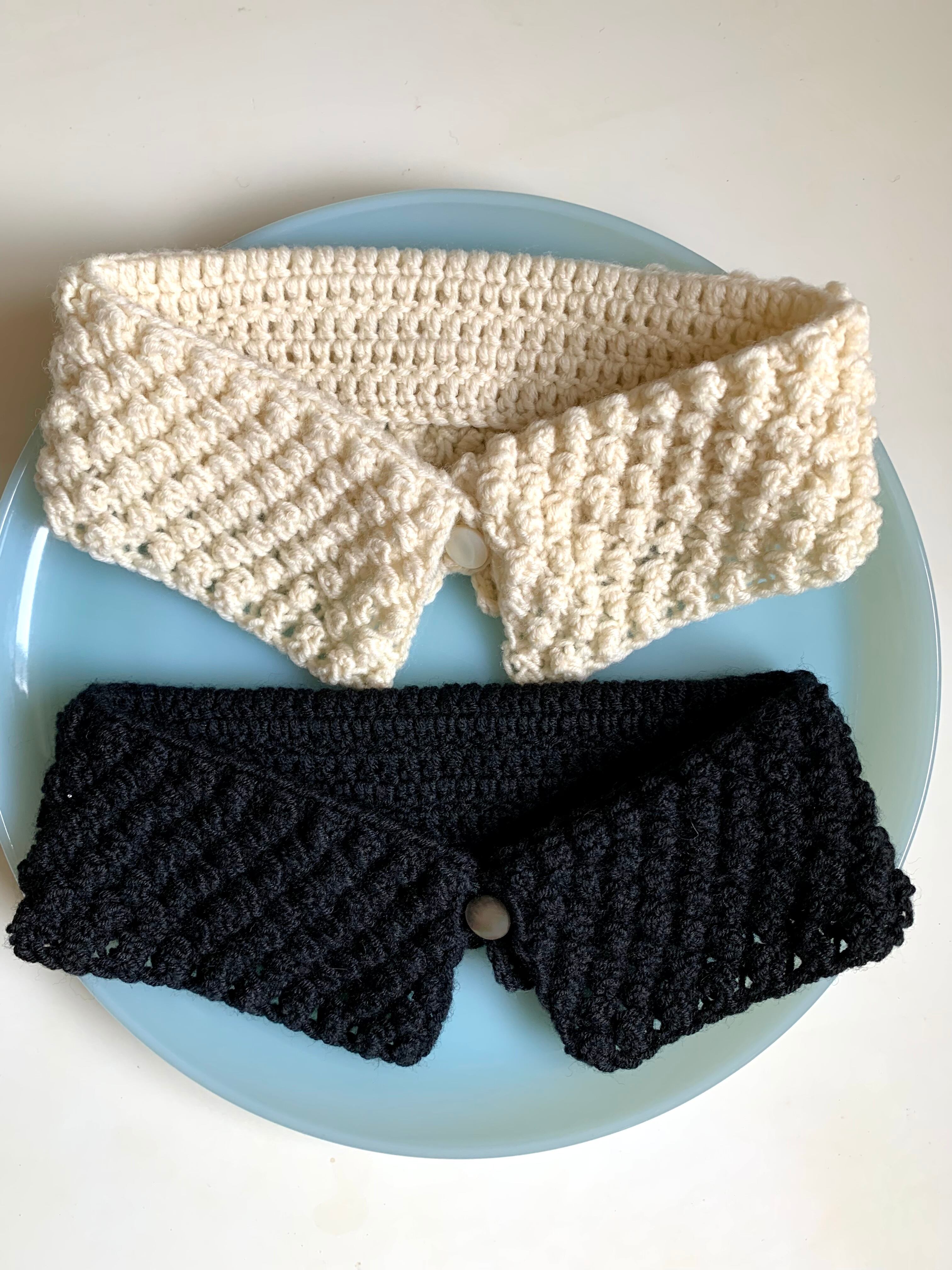 その名もブラックベリーステッチという技法で編んだ小さな付け襟です。(またはトリニティステッチとも言います)