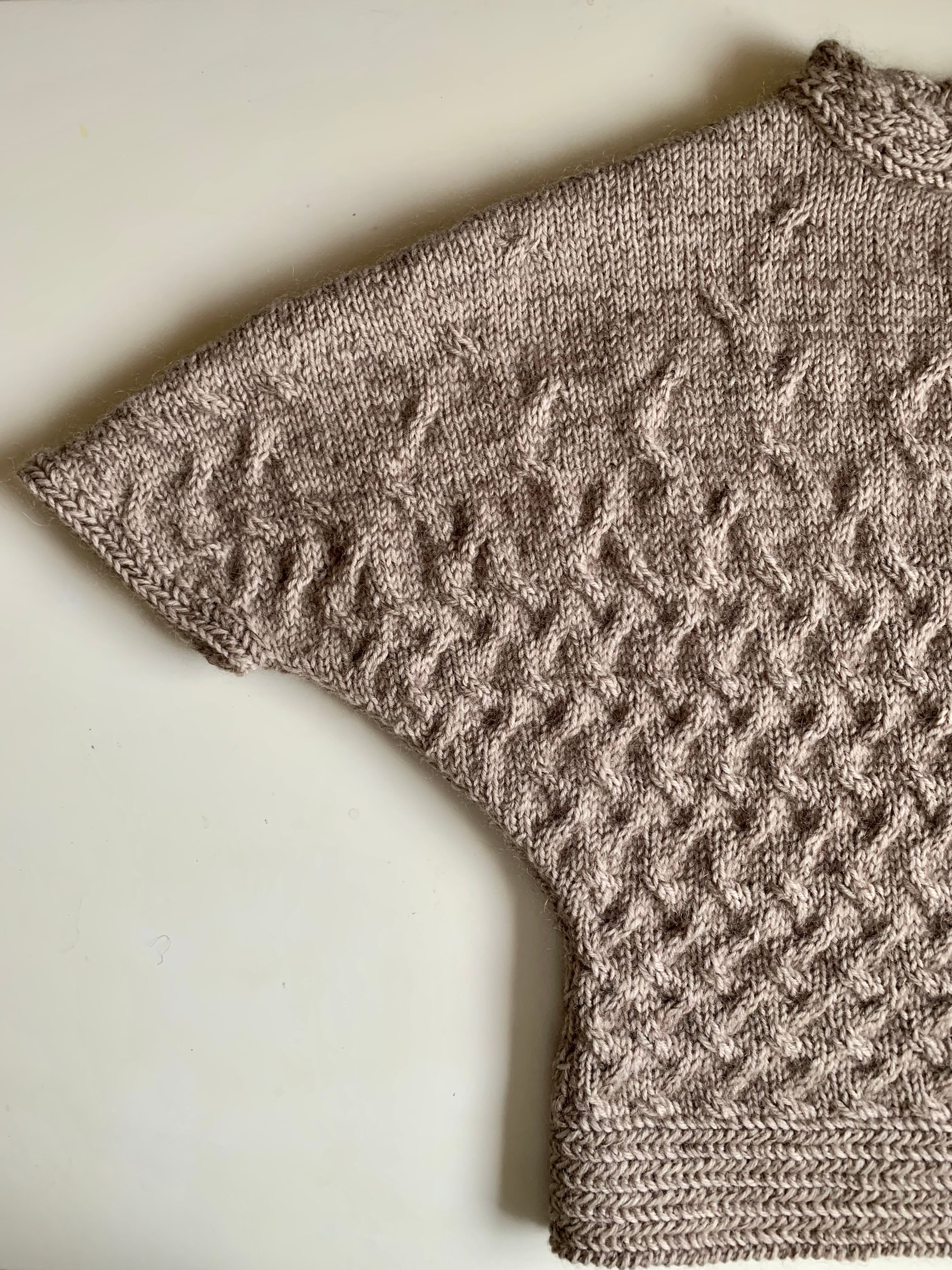 編みかけの籠をイメージしたバスケタリードルマンニットを編みました。