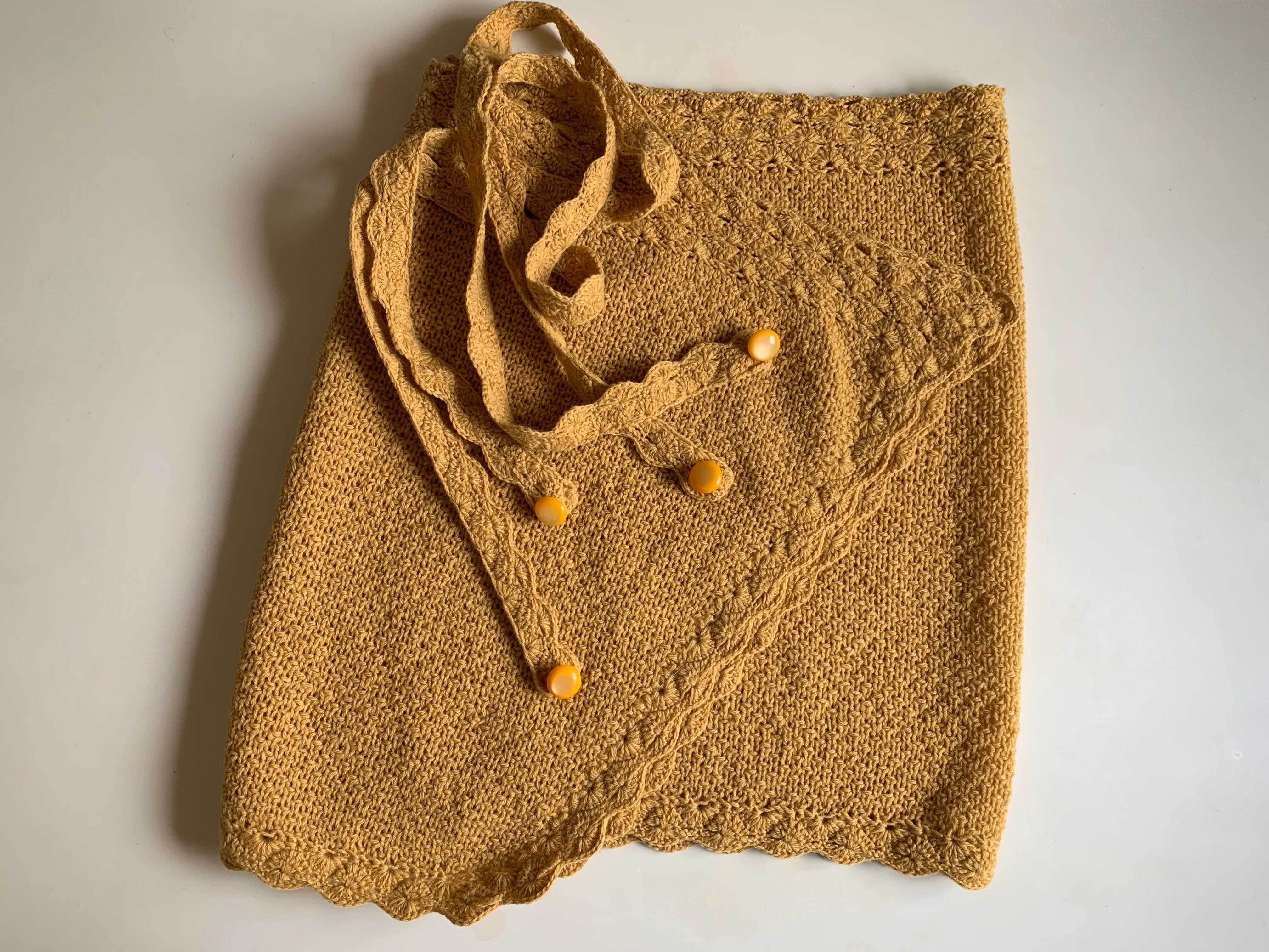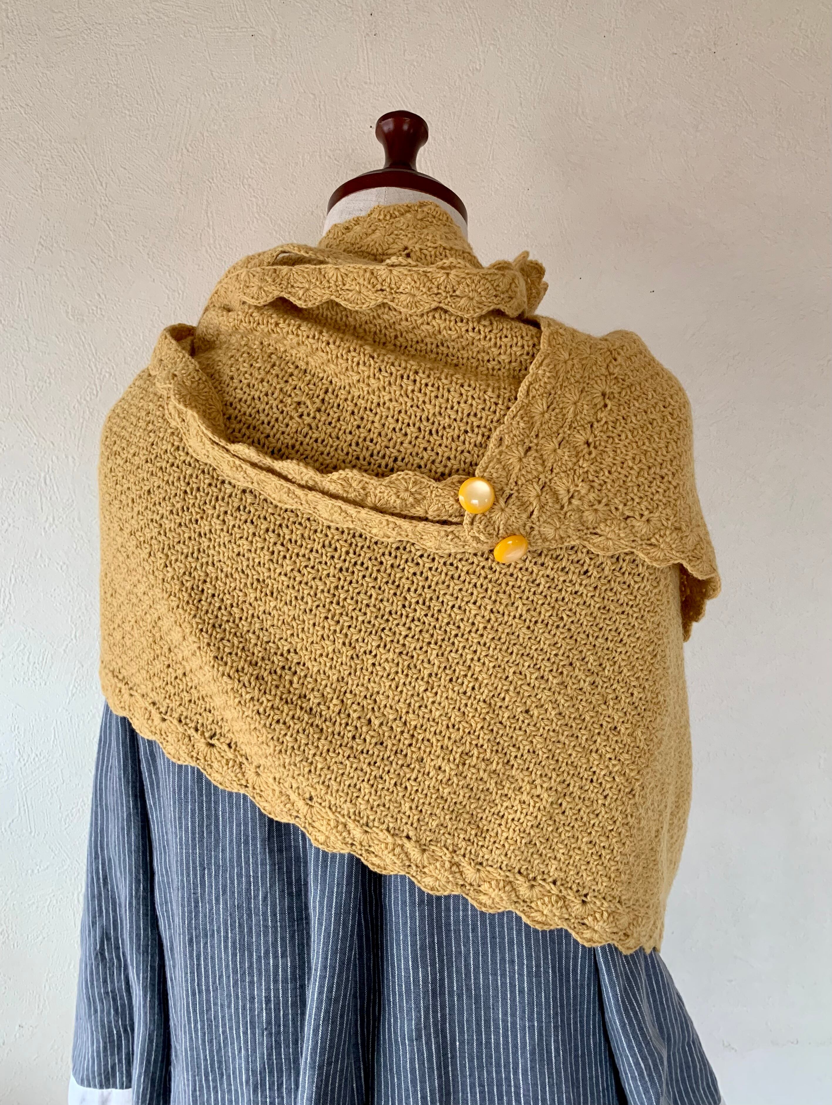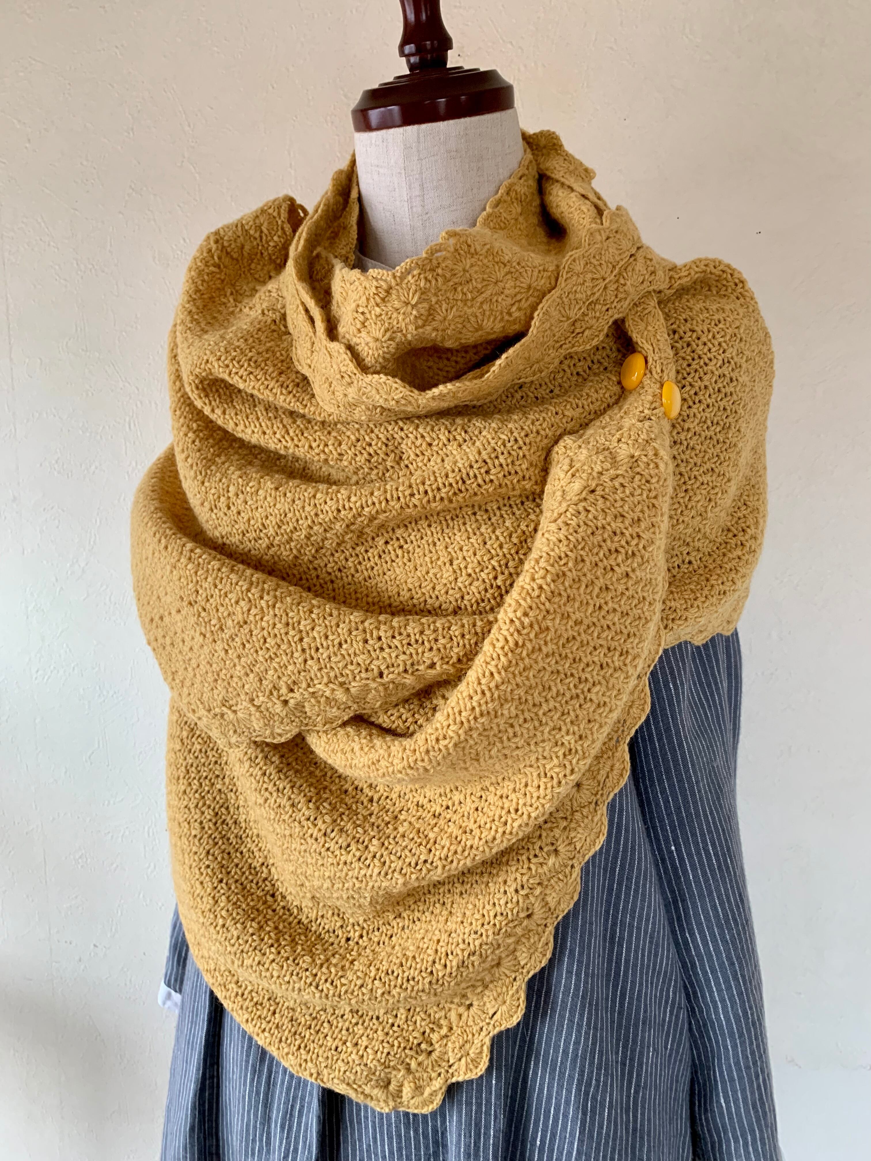 ミモザのショール、ときどき巻きスカート、つまりはお気に召すままニット(サスペンダーを添えて)