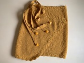 まるでミモザのように、ぽこぽこした引き上げかのこ編みで編んだ台形の編み地。ぐるりとかぎ針編みの縁を施した軽く柔らかでシンプルなニットです。