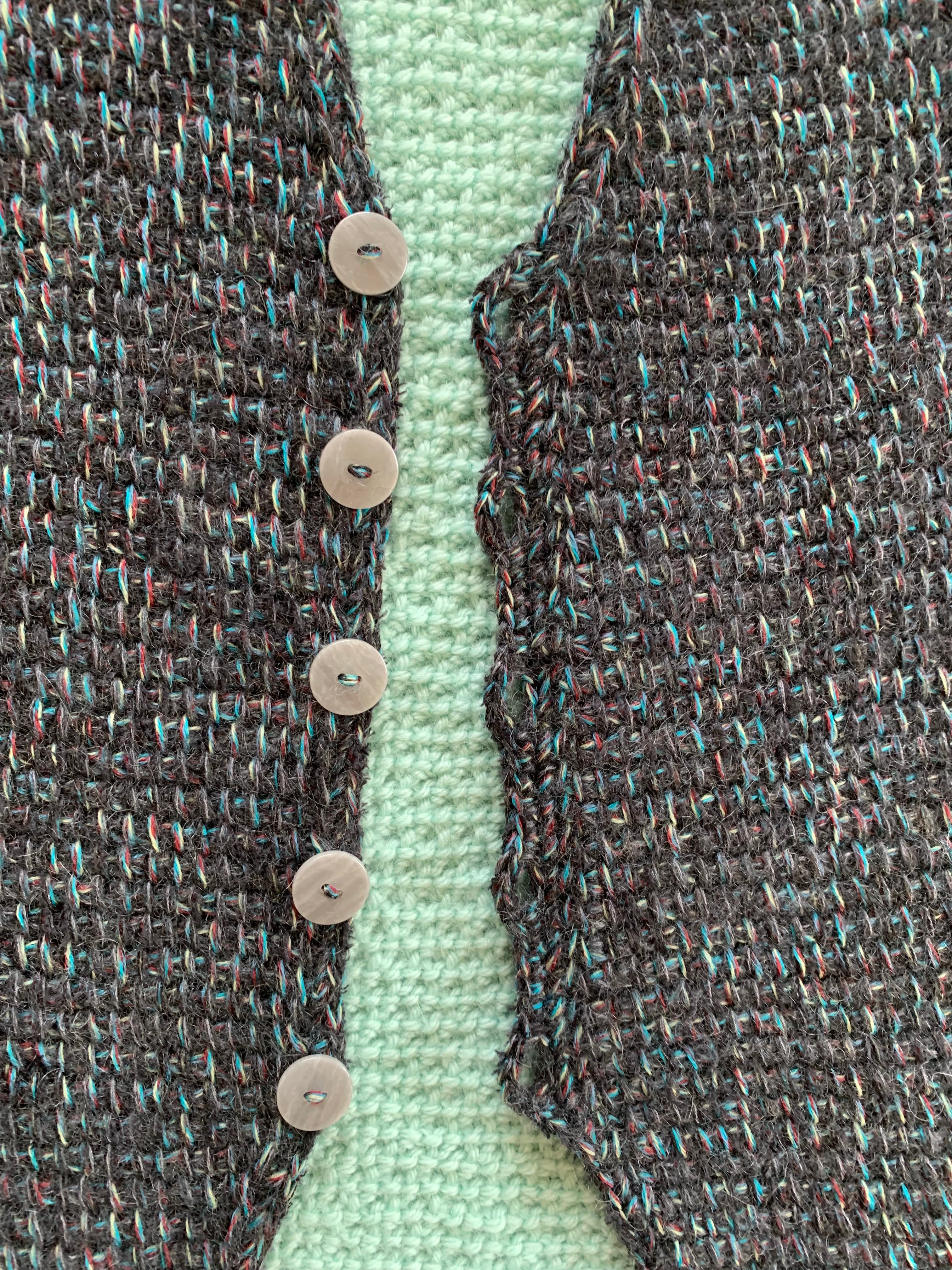 前身頃と後身頃の色を変える、編み地の面積が小さいベストだからこそ出来ました。