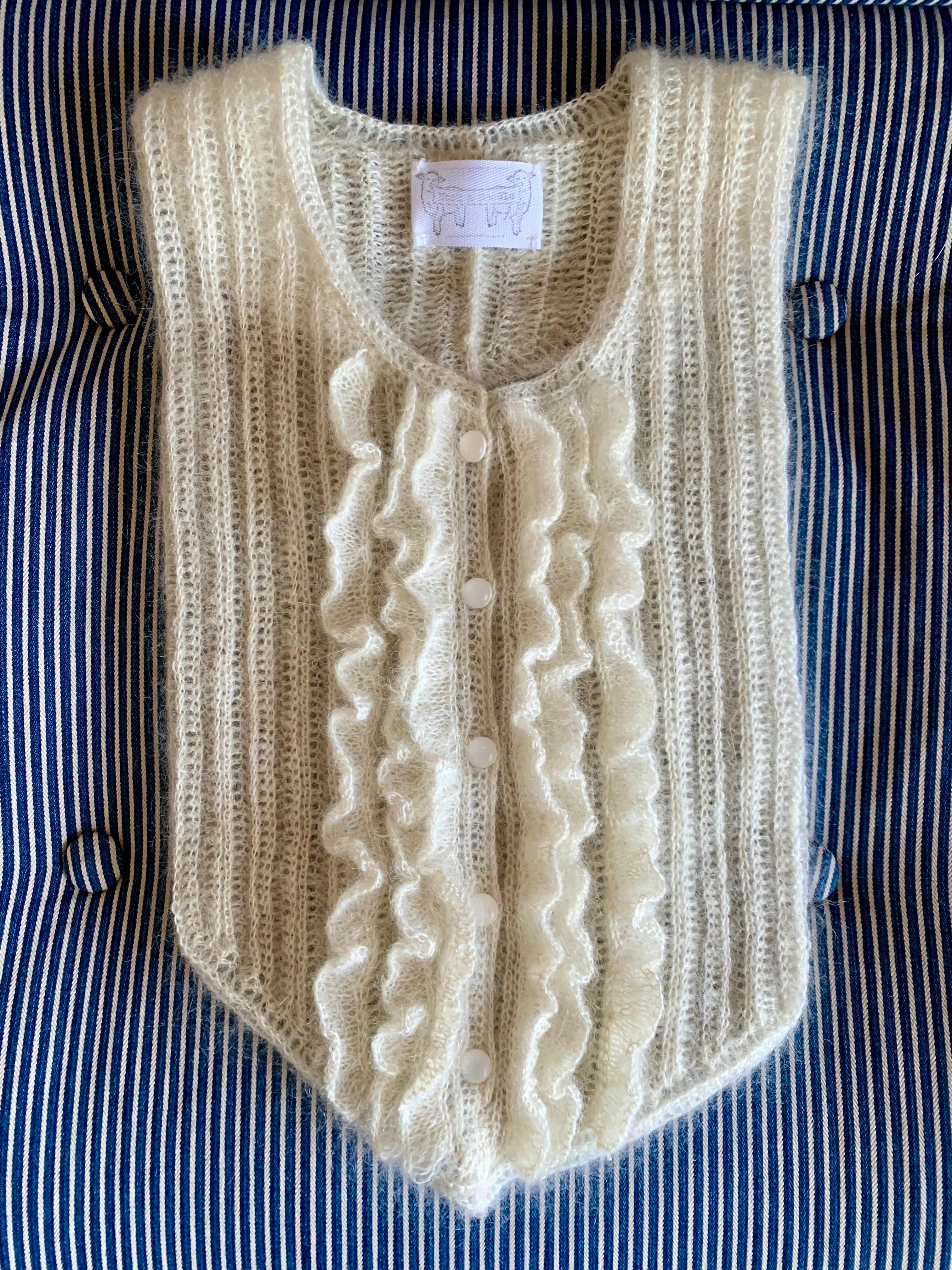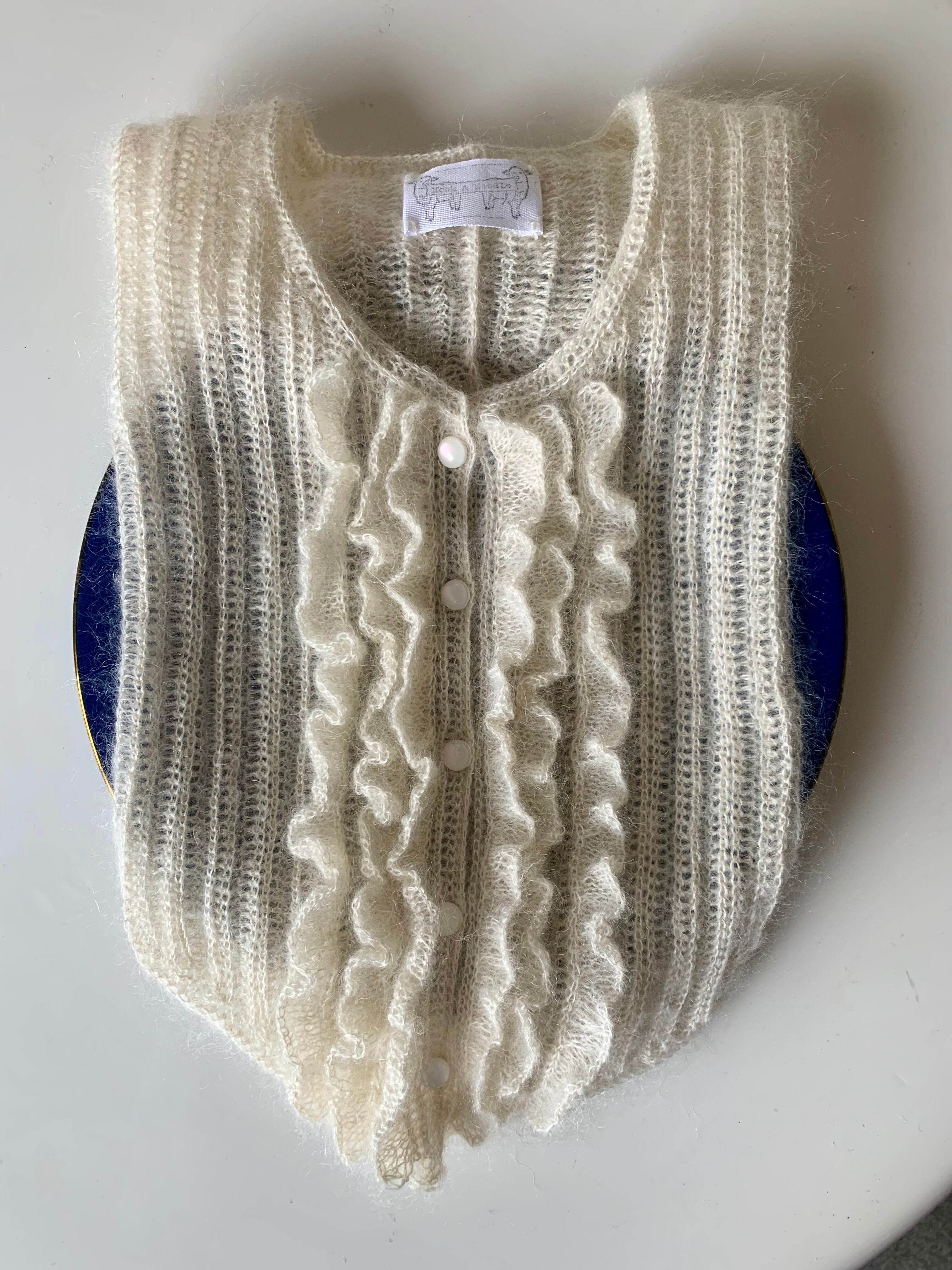 繊細なシルクモヘアの糸で編んだフリルピンタックのヨーク付け襟です。こちらはミルクホワイトです。