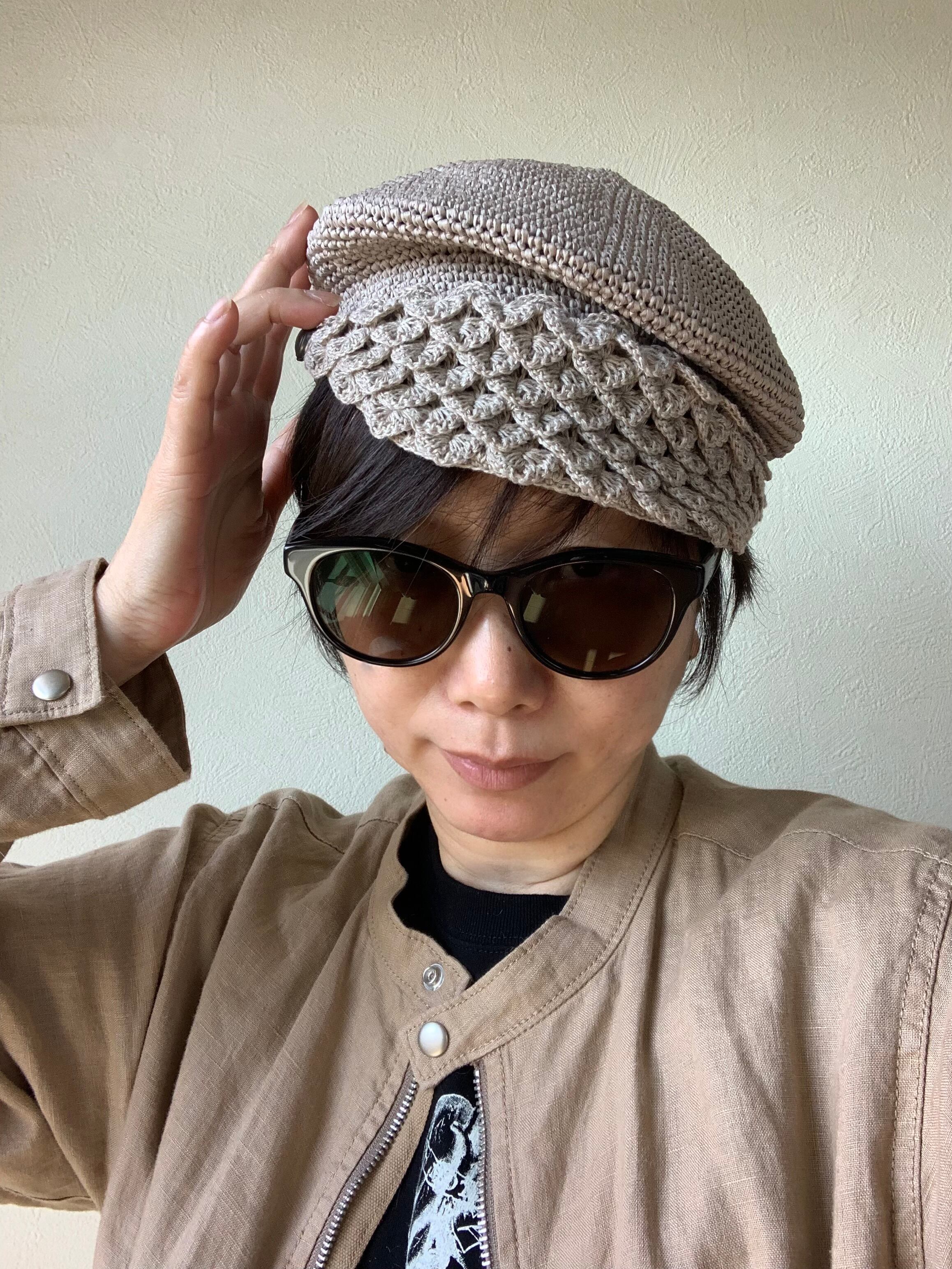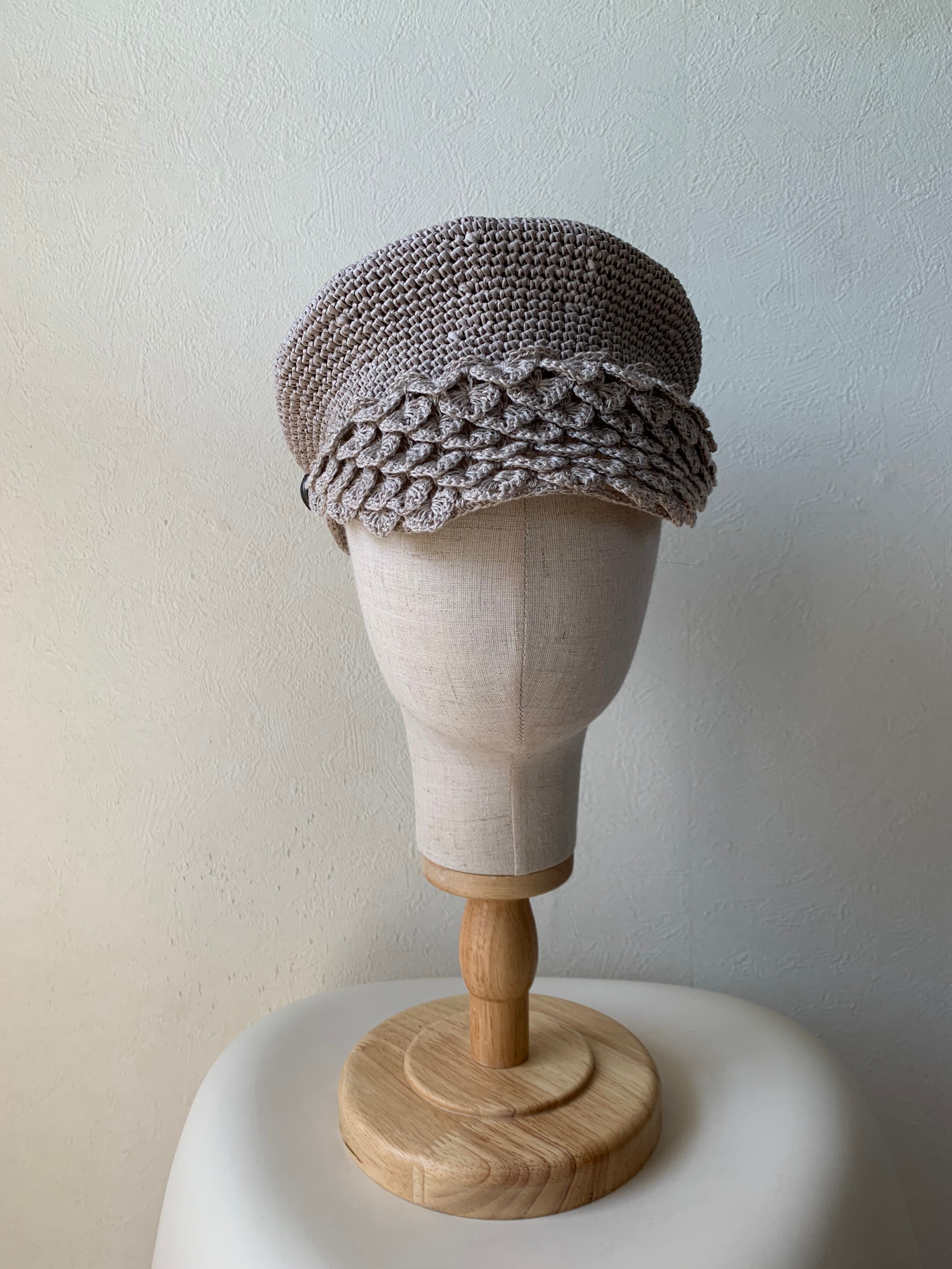 とうわけで作ったブリムつきの春夏用ベレー帽。