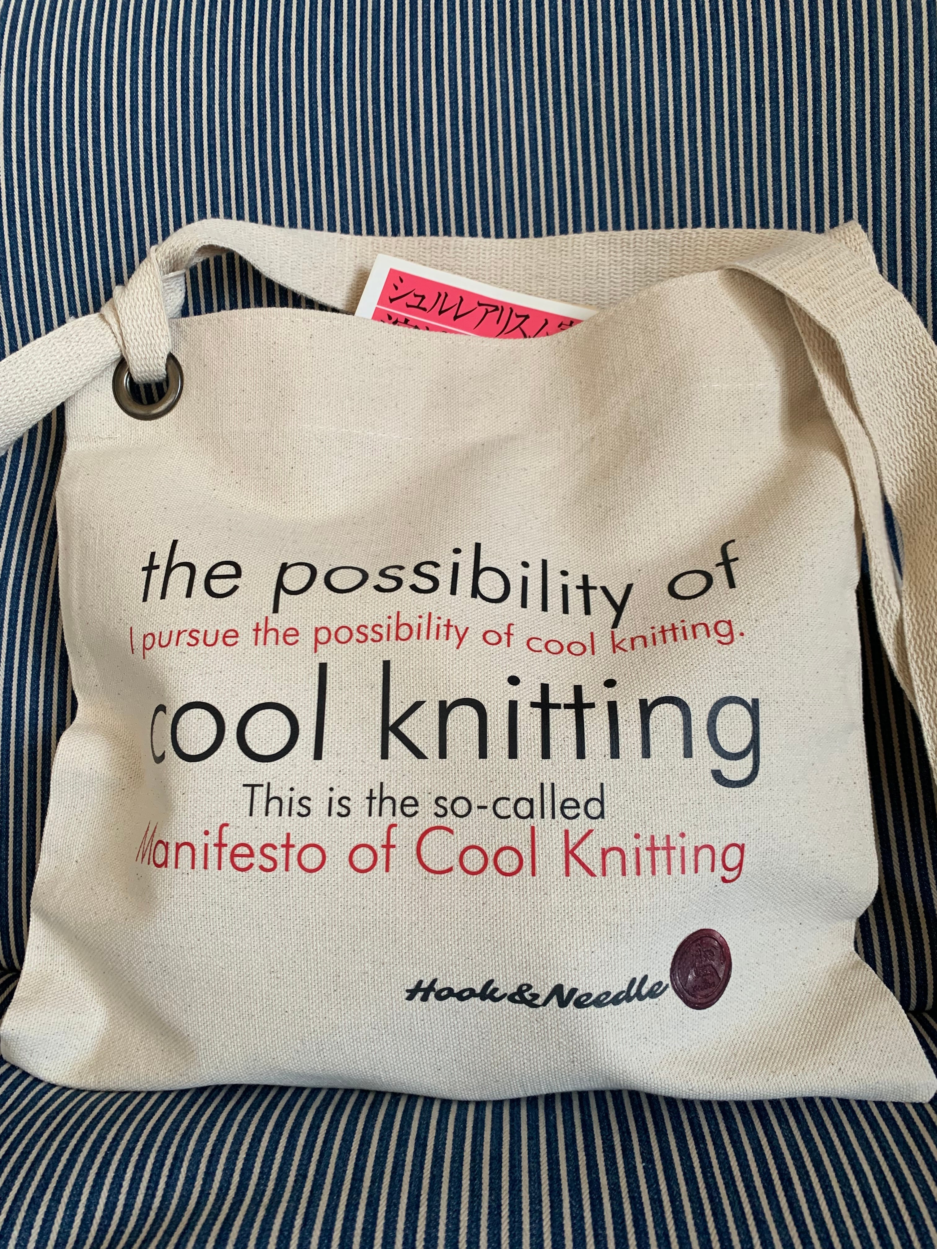 クールニッティング宣言をプリントしたオリジナルサコッシュです。