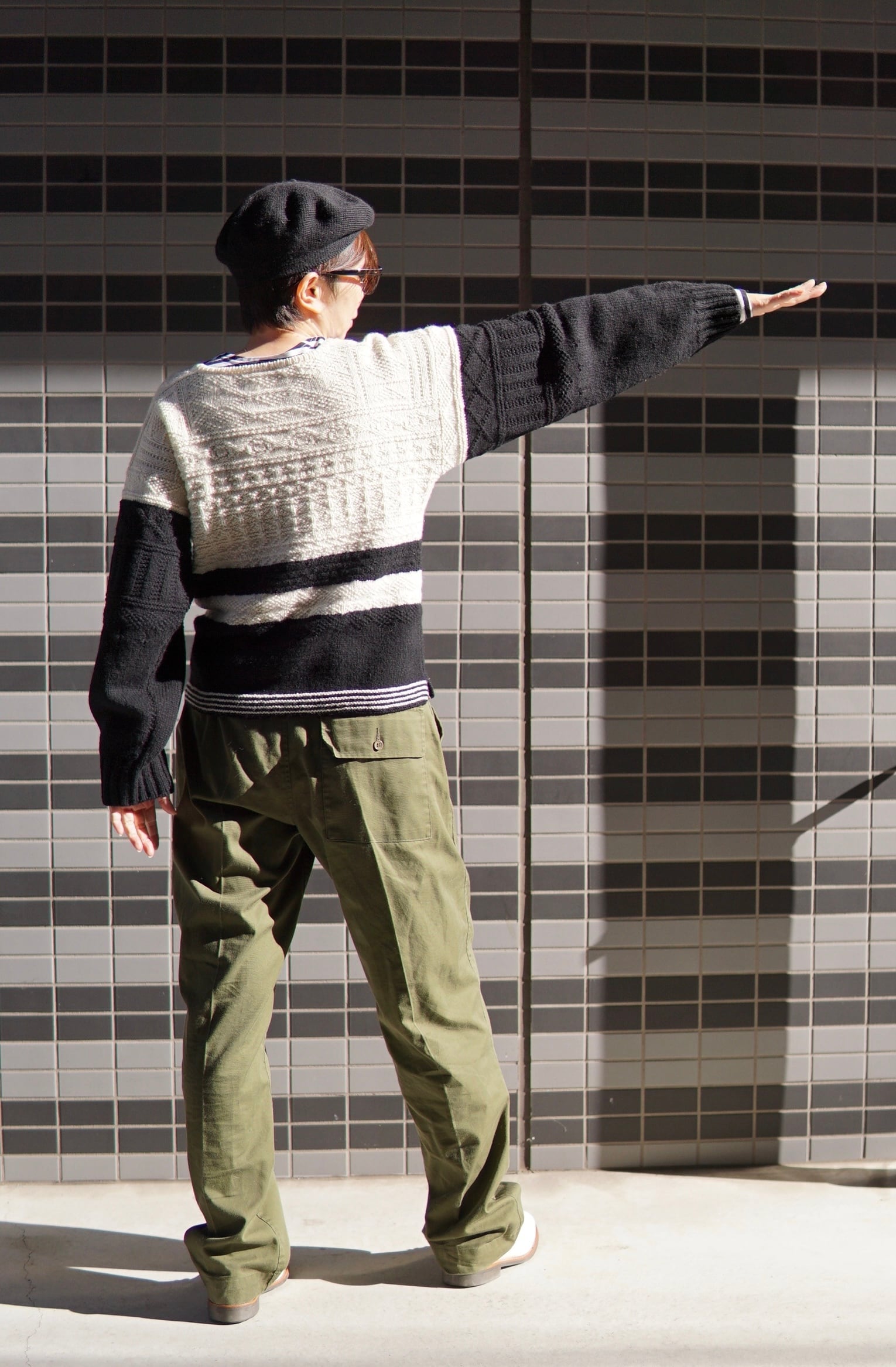 袖も身頃も襟もゆったりとした着心地のセーター。シュルレアリストのように自由にご着用いただければと思います。